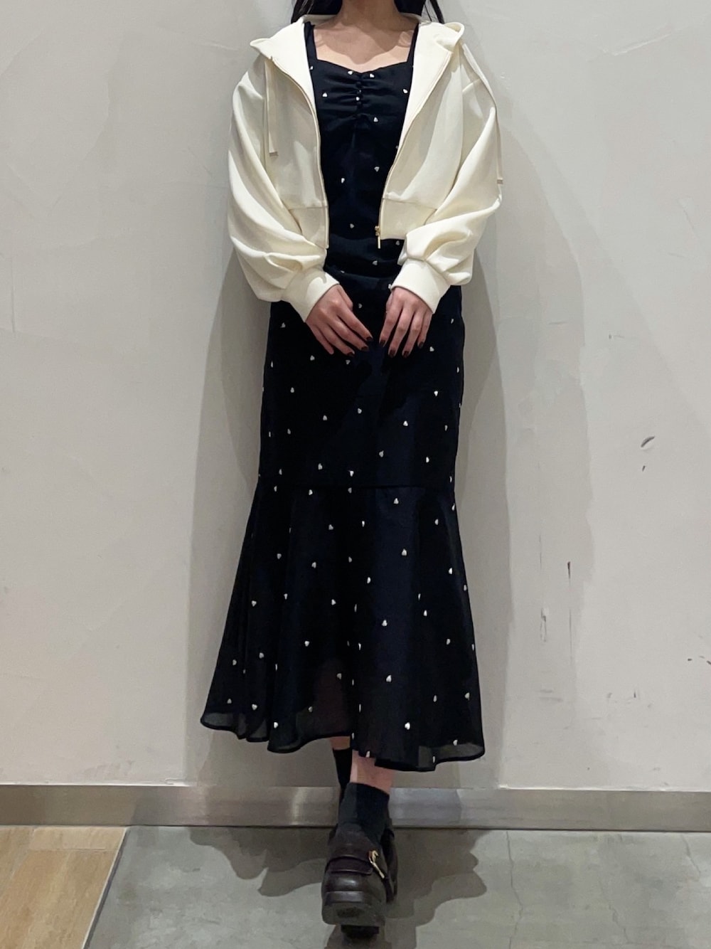 綺麗めにもカジュアルにも使える万能パーカーです! どのアイテムにも合わせやすい着回し抜群のパーカーとなっております😵💫🎶 ワンピースは細やかなハートがラブリーで可愛い🩷