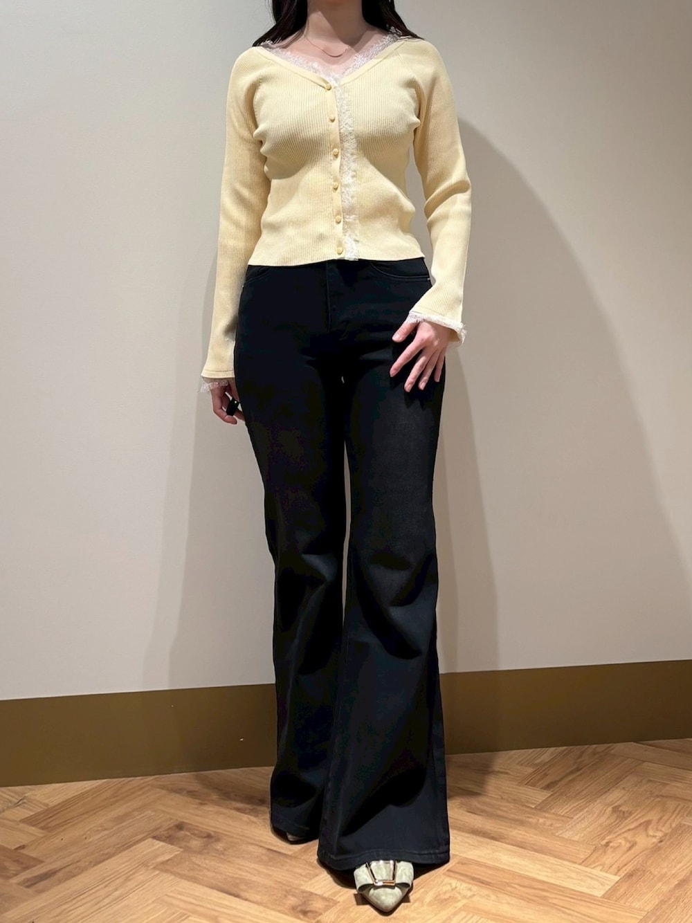 モユク札幌店(31Sonsdemode モユク札幌店)のニット/セーター「2026春夏新作 レーストリミング袖フレアニット」を使ったコーディネート