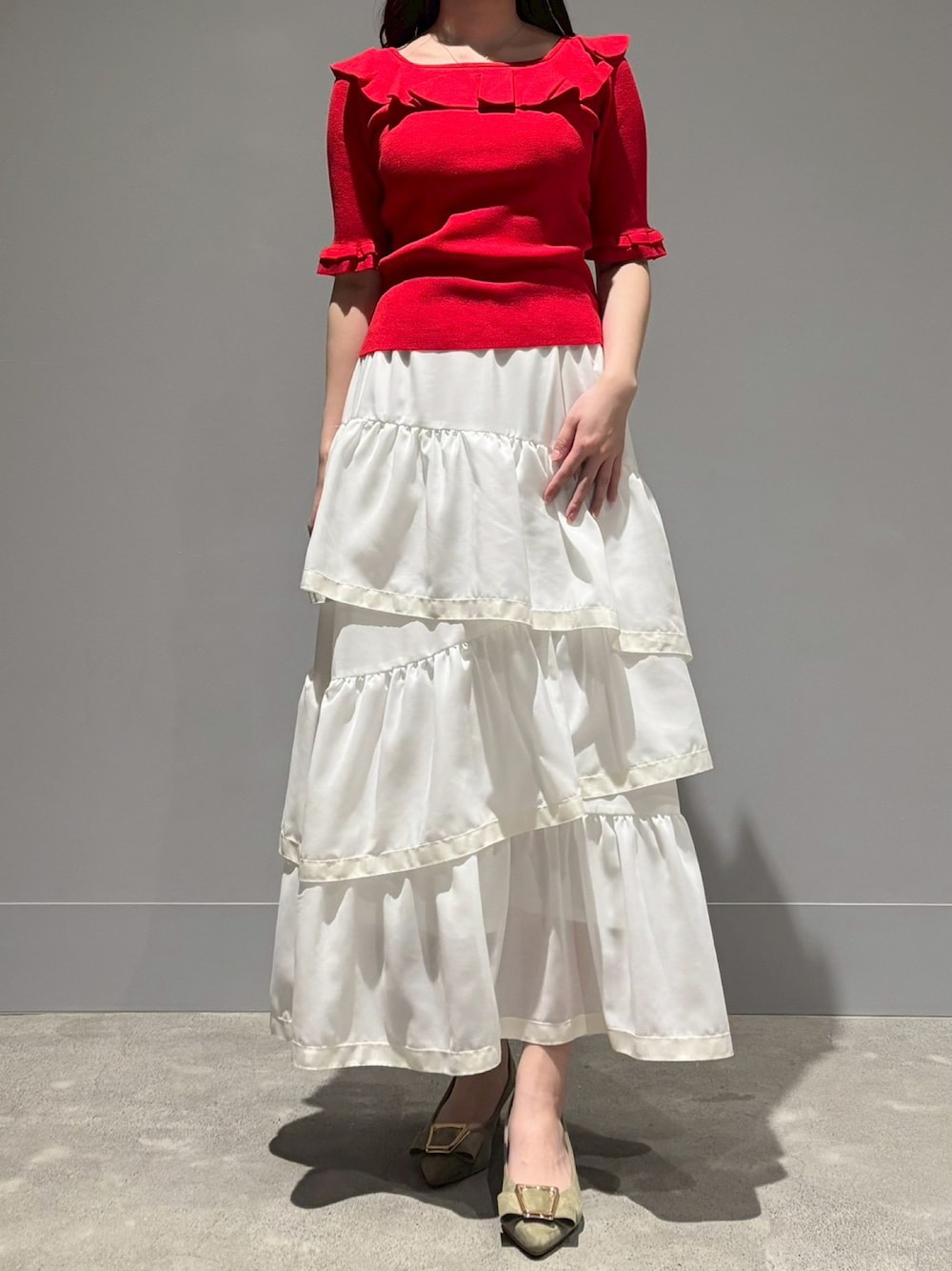 華やかな赤が着映えするニットコーデです♡