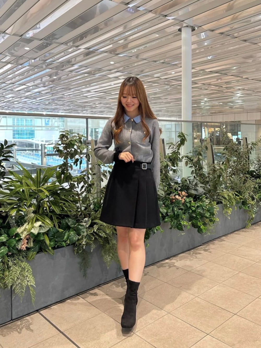 可愛い雰囲気とクールな黒を使った甘辛mixコーディネートです🖤 トップスがカジュアルな分、足元はブーツで大人っぽくしてみました👢✨