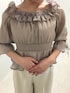 シアーのフリルでフェミニンさを出しつつ、 パンツでカッコよくまとめて綺麗めに♪ 中に薄手のハイネックなど着れば秋冬も着れます🤍