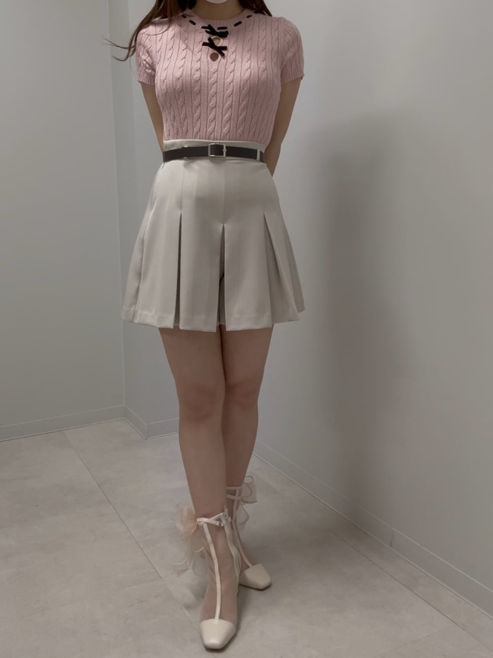 広島ミナモア店(31Sonsdemode 広島ミナモア店)のニット/セーター「一部店舗限定 フロントリボン半袖ニット」を使ったコーディネート