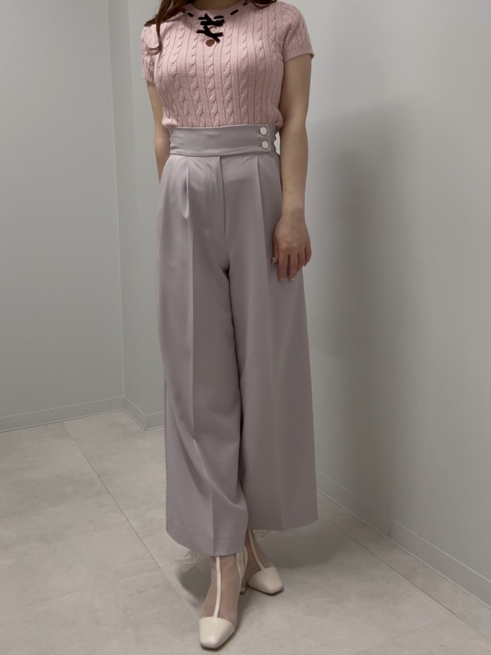 広島ミナモア店(31Sonsdemode 広島ミナモア店)のニット/セーター「一部店舗限定 フロントリボン半袖ニット」を使ったコーディネート
