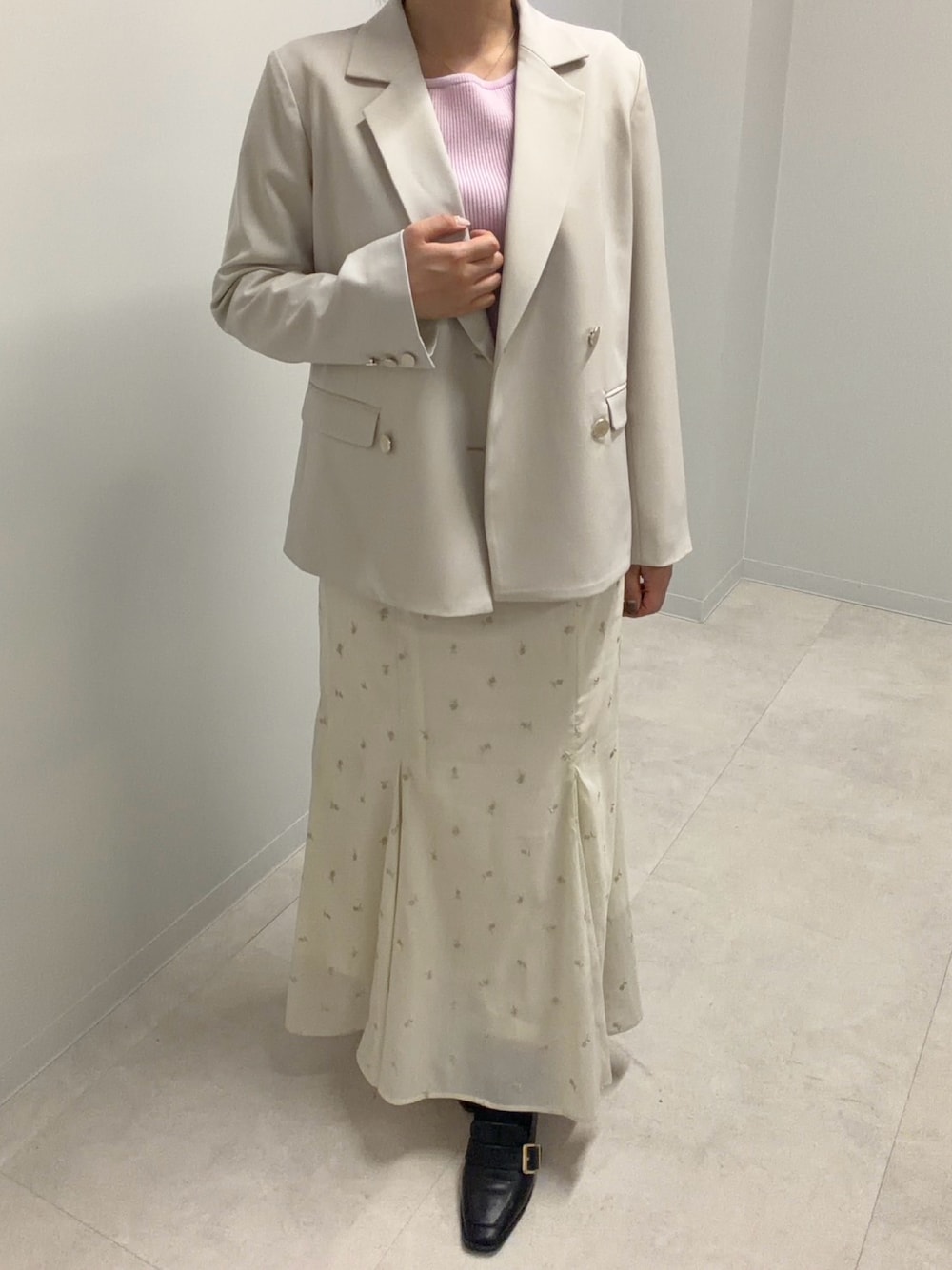 白寄りのベージュジャケットに、 中にピンクの差し色で華やかな女性らしさ満点の コーデに仕上がりました💐