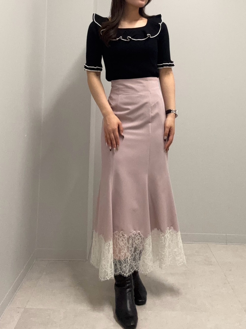 可愛らしいピンクの色味と大人っぽく黒の組み合わせでコーディネートを組みました❣️