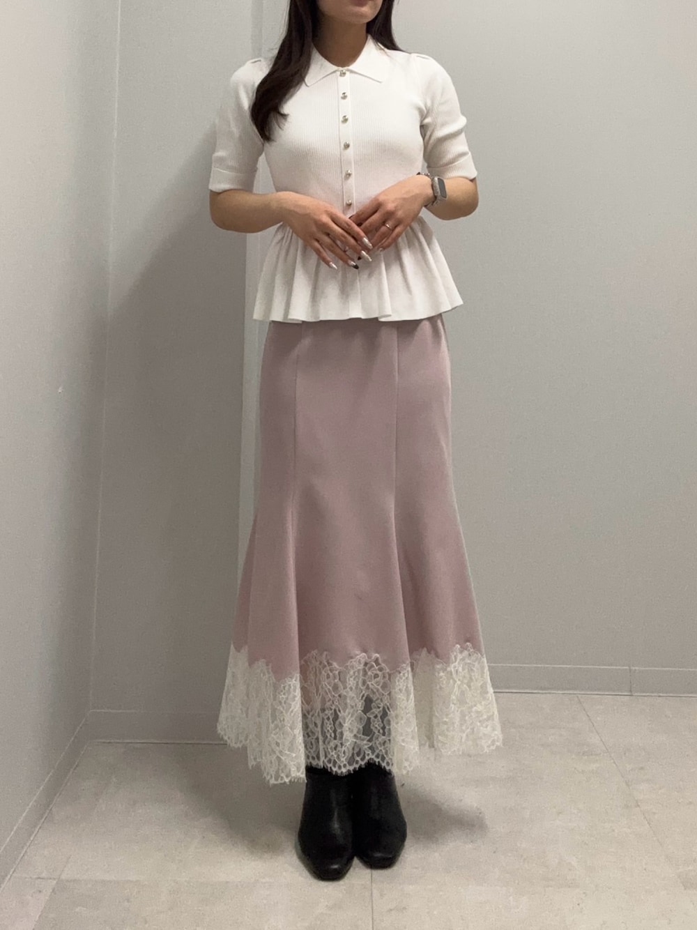 ぺプラムニットを使った綺麗めコーデになります😌🎀