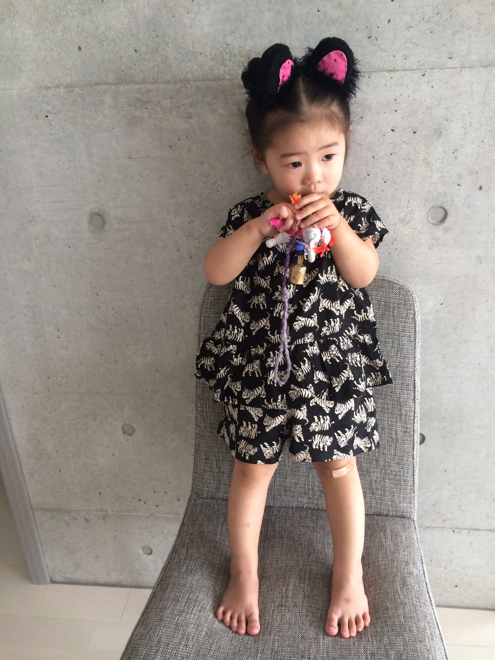 SALEでSALEぢゃないの買ってしまう、あるある。 可愛いパンツ〜^o^と、見てたら、トップスも発見!セットアップに出来るやーん!と、テンション上がり、バーバがリーリとオソロで買ってくれた〜^o^^o^ ラッキー!センキュー! ワクワク、今日着せたら、可愛い!笑 ただ、膝が傷だらけの少女に生足スタイルは危険が沢山すぎた(°_°)(°_°) はよ治れー!