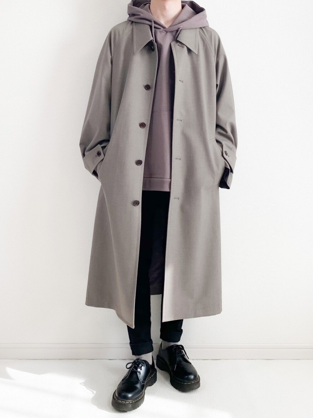 みっつーのステンカラーコート「BALMACAAN COCOON COAT」を使ったコーディネート