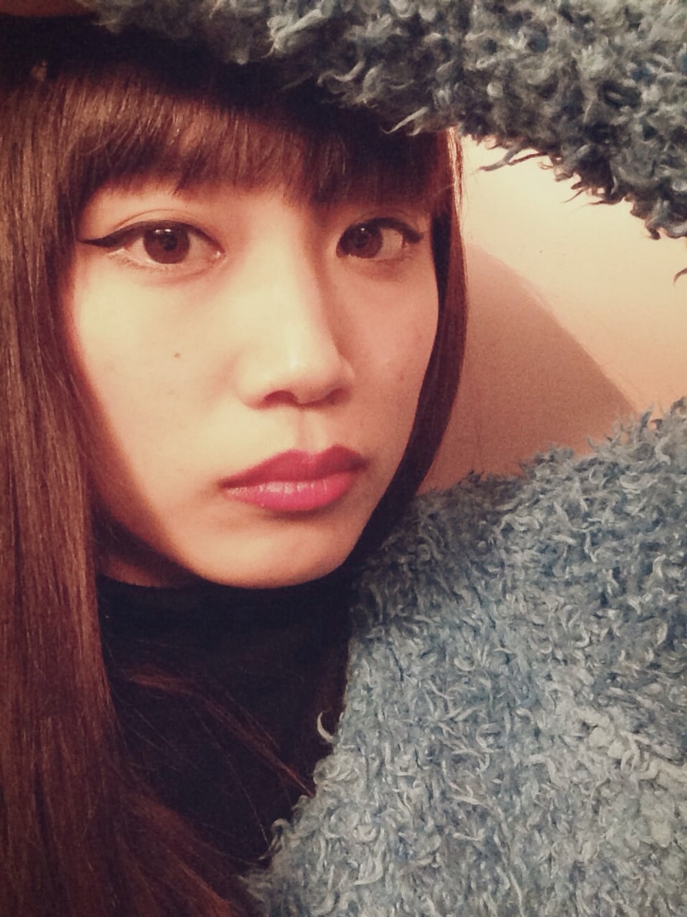 寒い日はこれに限るー。 モコモコモヘアニット。 みんなにクッキーモンスターっていわれます。 tops : SLY