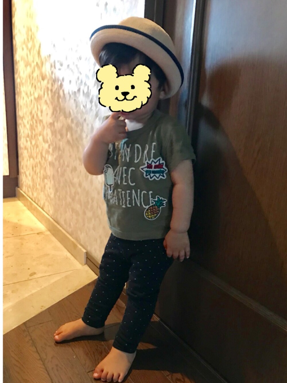 キメてるくせにぶりっ子ポーズ😂✨ まだまだ転ぶことが多いから お外で遊ぶ時は長いパンツが いいかなって思うけど暑いかな って思ったり悩み所です😣