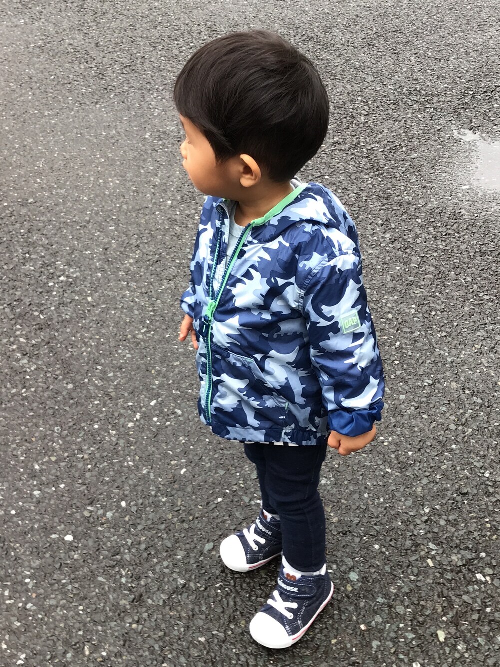 雨の日のお出かけ☂️ ギャップの恐竜モチーフの 柄がお気に入りみたい♡
