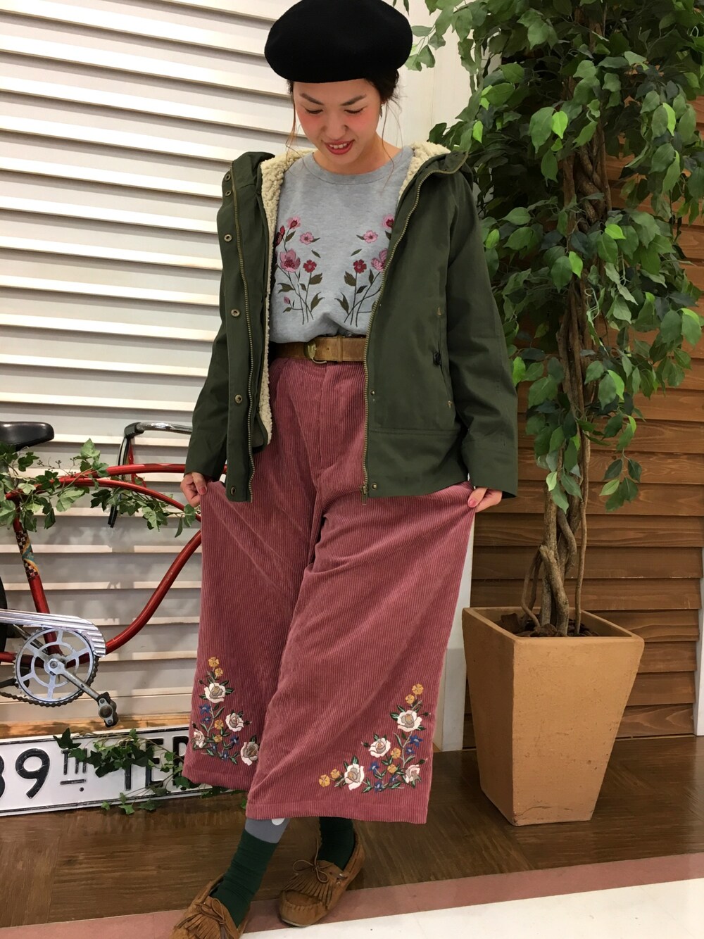 こんにちは😃やっと寒くなって冬らしくなってきましたね☃️そんなこの時期にピッタリのアウターのご案内です⭐︎👀 キューティーブロンドのボア付きジャケット‼️こちらはなんと中のボアが取り外しできる優れものなんです🤔 取り外せば春頃まで着られるので便利ですよね😊中のプルオーバーとコーデュロイパンツも刺繍が入っていて可愛いんです(*´∇`*)コートも軽くて動きやすいので、紅葉など見に行くにはオススメのコーデです( ^ω^ )🍁