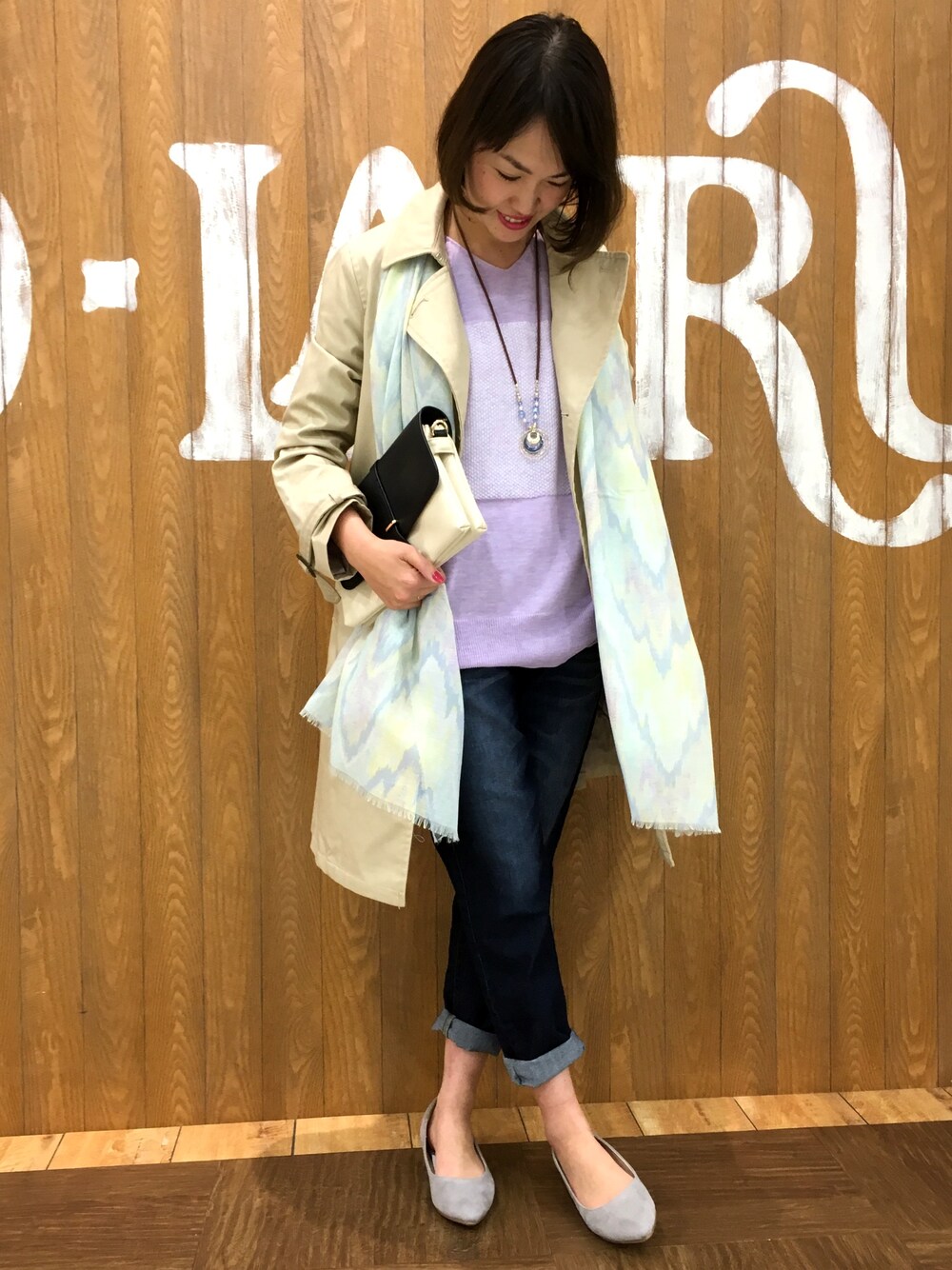 こんにちは。もう春ですね( ´ ▽ ` )ノ今回はシューラルーオススメのテーパードデニムとこの春必需品のトレンチコートに、差し色に春カラーのプルオーバーを合わせてみました‼︎足元はパンプスで少しきれいめコーデにしてみました‼︎(^o^)