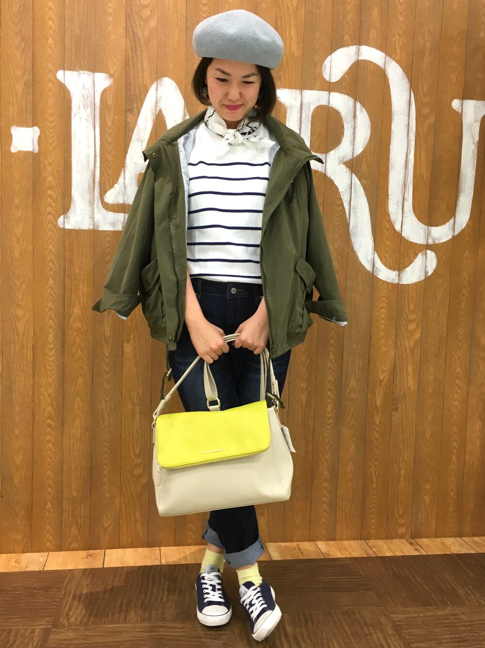 こんにちは。今回は前回もオススメしたシューラルーのデニムテーパードに合わせて、キューティーブロンドのブルゾン➕ボーダートップスでカジュアルスタイルにしてみました‼︎
