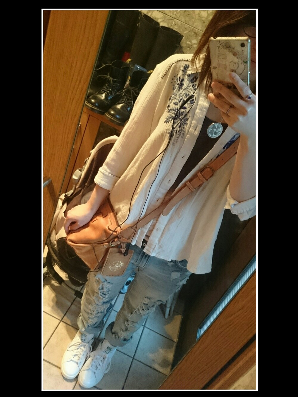 お気に入りのチチカカの 刺繍シャツを着ました♪ 楽チンコーデです。