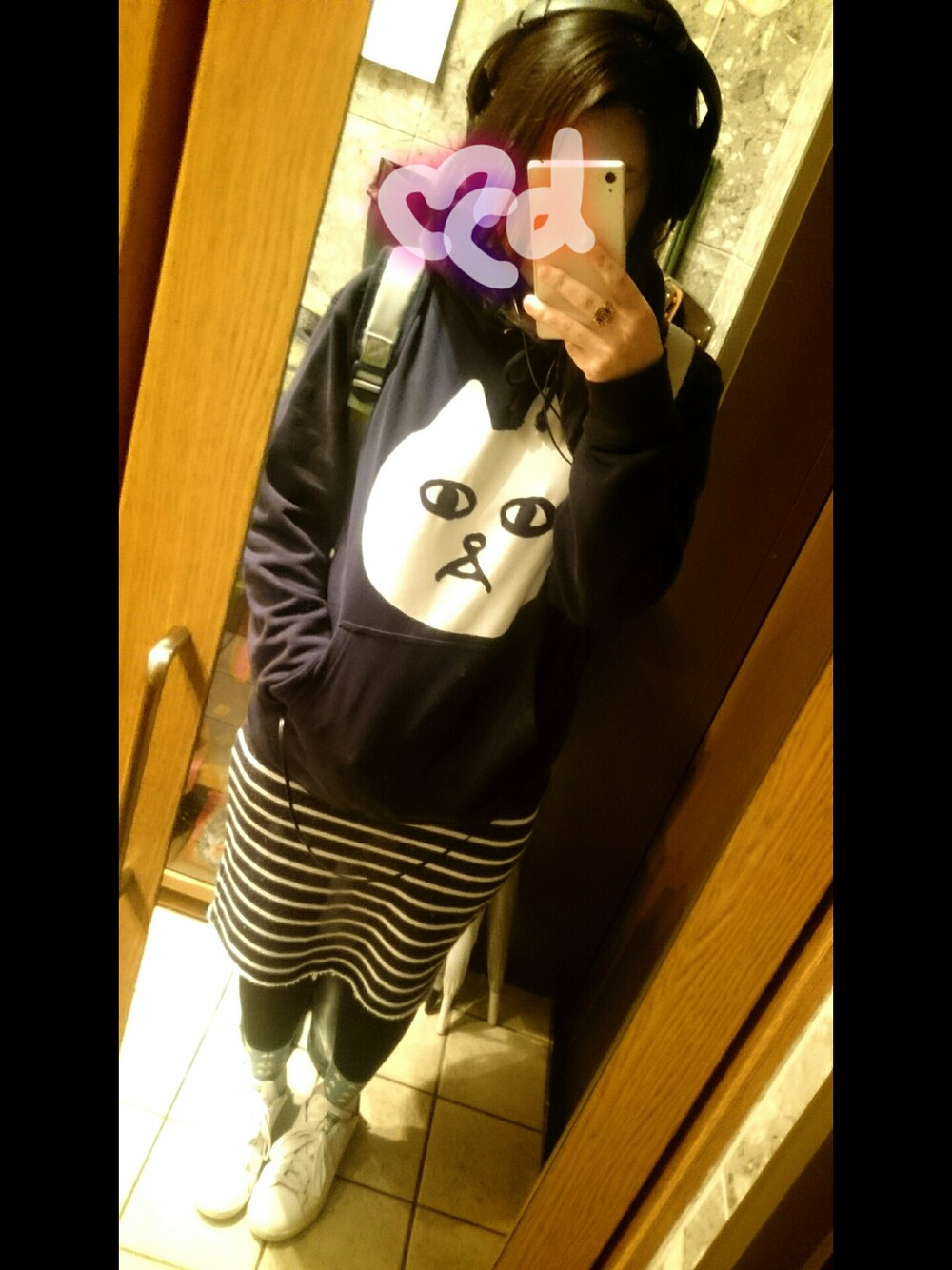 お散歩コーデpart2 フクモトエミさんのエミネコパーカーと 猫柄靴下を合わせて ネコ猫ヅクシにしてみました。