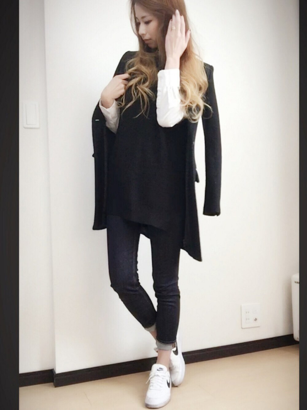 突然の改名失礼します笑 友達より探しにくいとクレームを受けたので 少し付け加えました!笑 元MIです! 撮り溜めラストは いつもの女の子らしさを捨てて 知的な感じに仕上げました(✿´ ꒳ ` ) なので髪もゆるーーーく巻き。 これにオーバーサイズを着ると本当に メンズライクすぎるので ミュラーのコンパクトめなコートにしてみました! 中はシャツにニットベストの王道合わせ…。