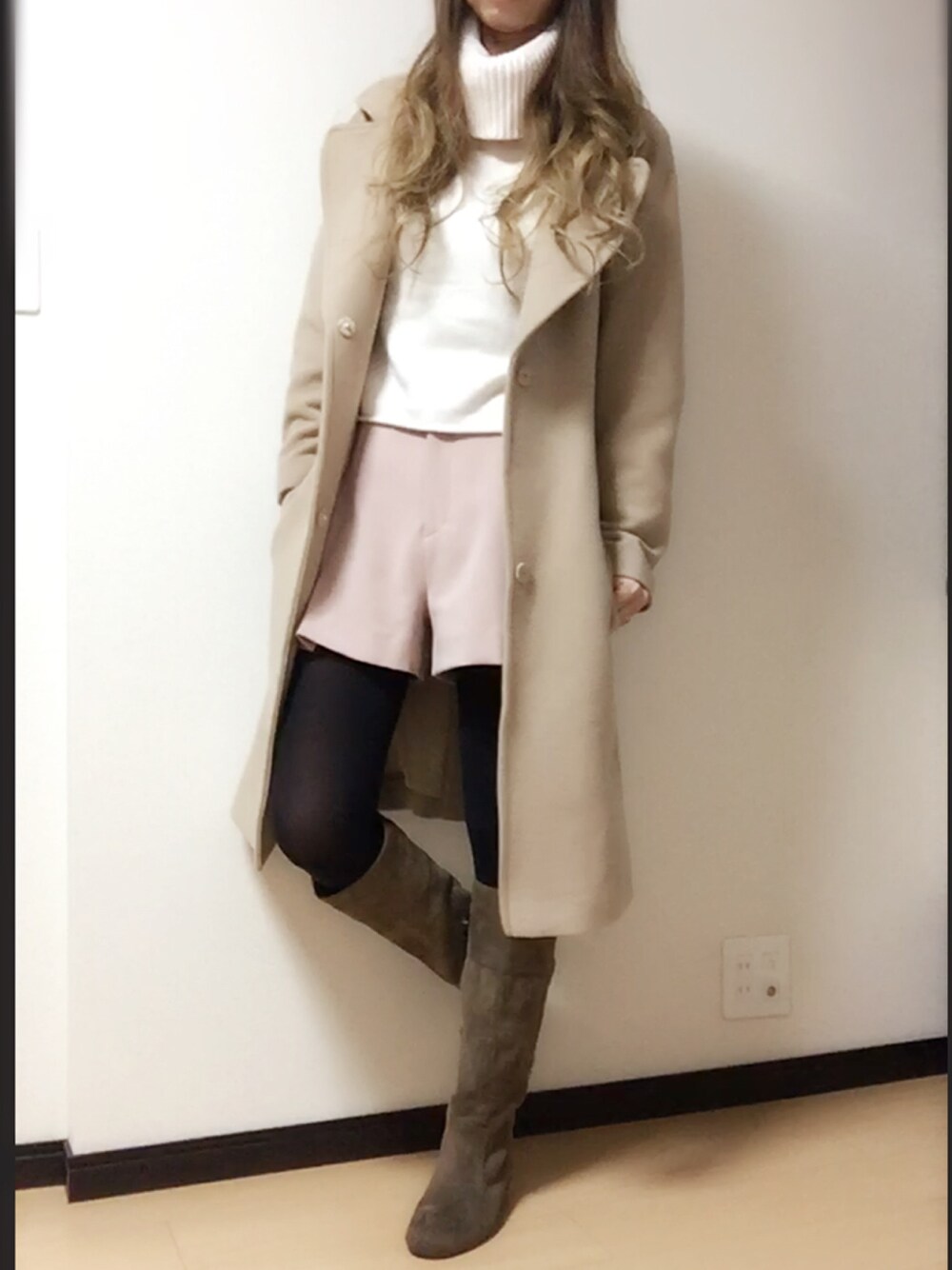 コート着まわしー♡ 柔らかくて軽いこのコートに さらに柔らかい色味で合わせて THE女子(✿´ ꒳ ` )ノ スカートにしようかと思ったけど 甘すぎない様にショーパンで合わせました! このコートといい トップスのニットといい 買って正解だったと思うMIでした゚+。*(*´∀`*)*。+゚