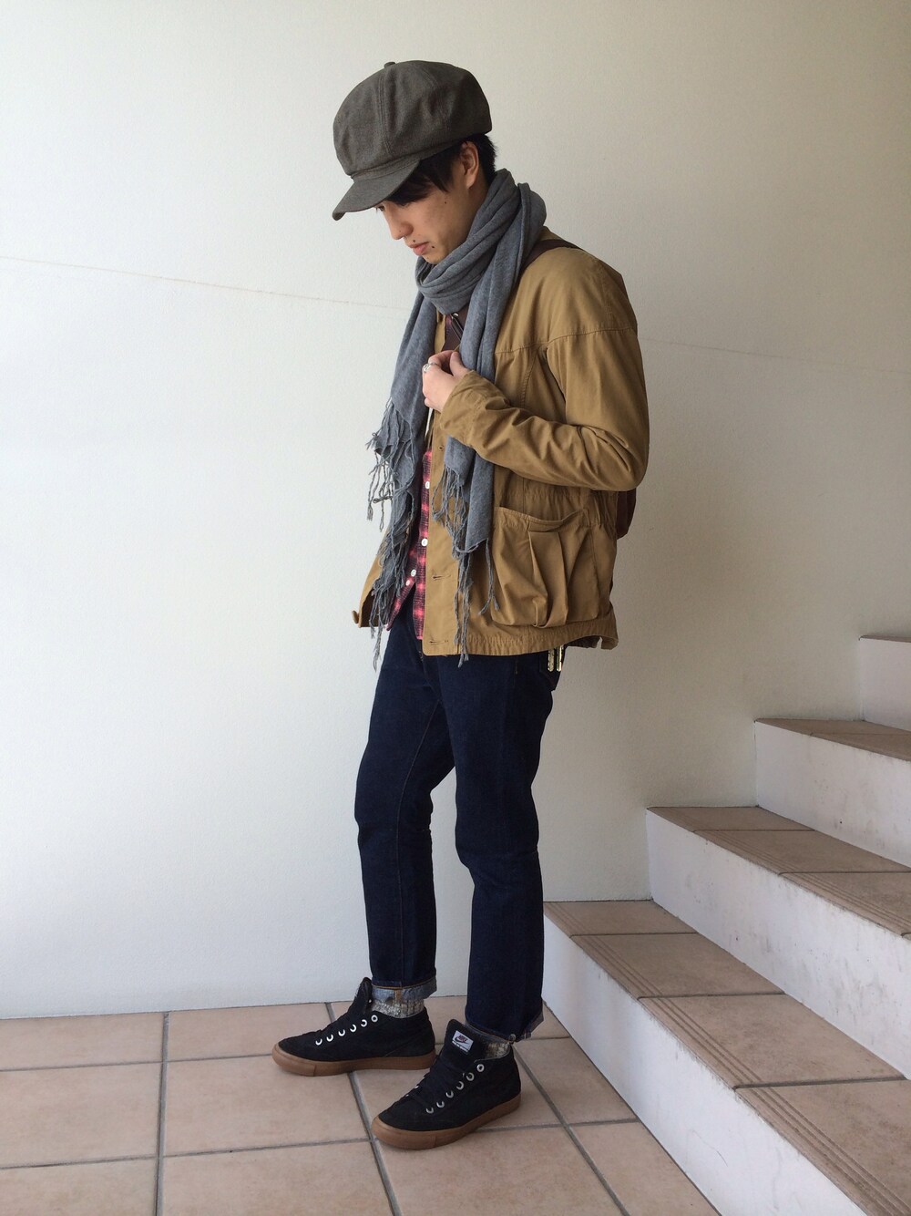 カントリーなカジュアルファッションをイメージしました。 ノーカラージャケットはシャツやストールなどとの合わせがしっくりくるし、個人的にはオシャレアイテムなイメージがありますね。