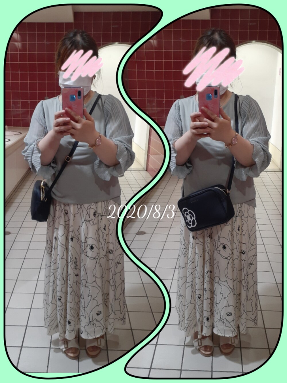 ミントグリーンのカットソーに花柄スカートを合わせました。