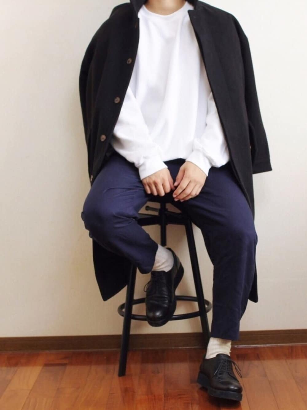 しんごのステンカラーコート「オーバーサイズ ラグランスリーブ ロングバルマカーンコート/メルトンステンカラーコート」を使ったコーディネート