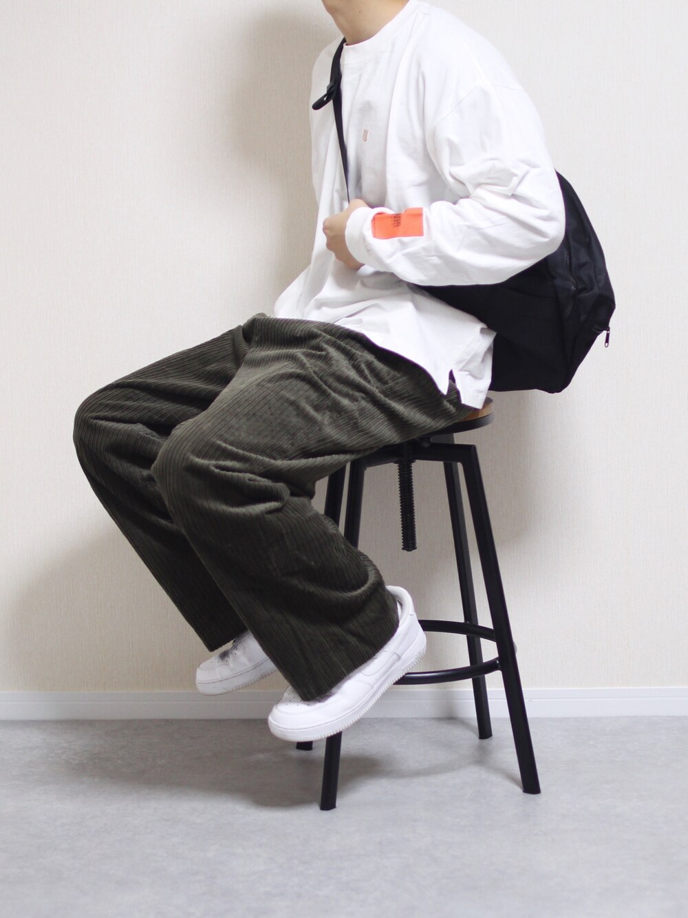 しんごのTシャツ/カットソー「UNIVERSAL OVERALL × FREAK'S STORE / ユニバーサルオーバーオール 別注袖プリント ロングスリーブTシャツ」を使ったコーディネート
