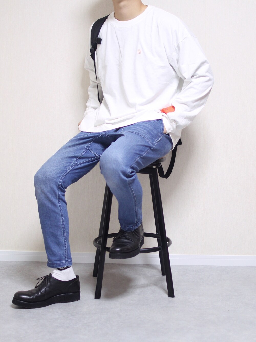 しんごのTシャツ/カットソー「UNIVERSAL OVERALL × FREAK'S STORE / ユニバーサルオーバーオール 別注袖プリント ロングスリーブTシャツ」を使ったコーディネート