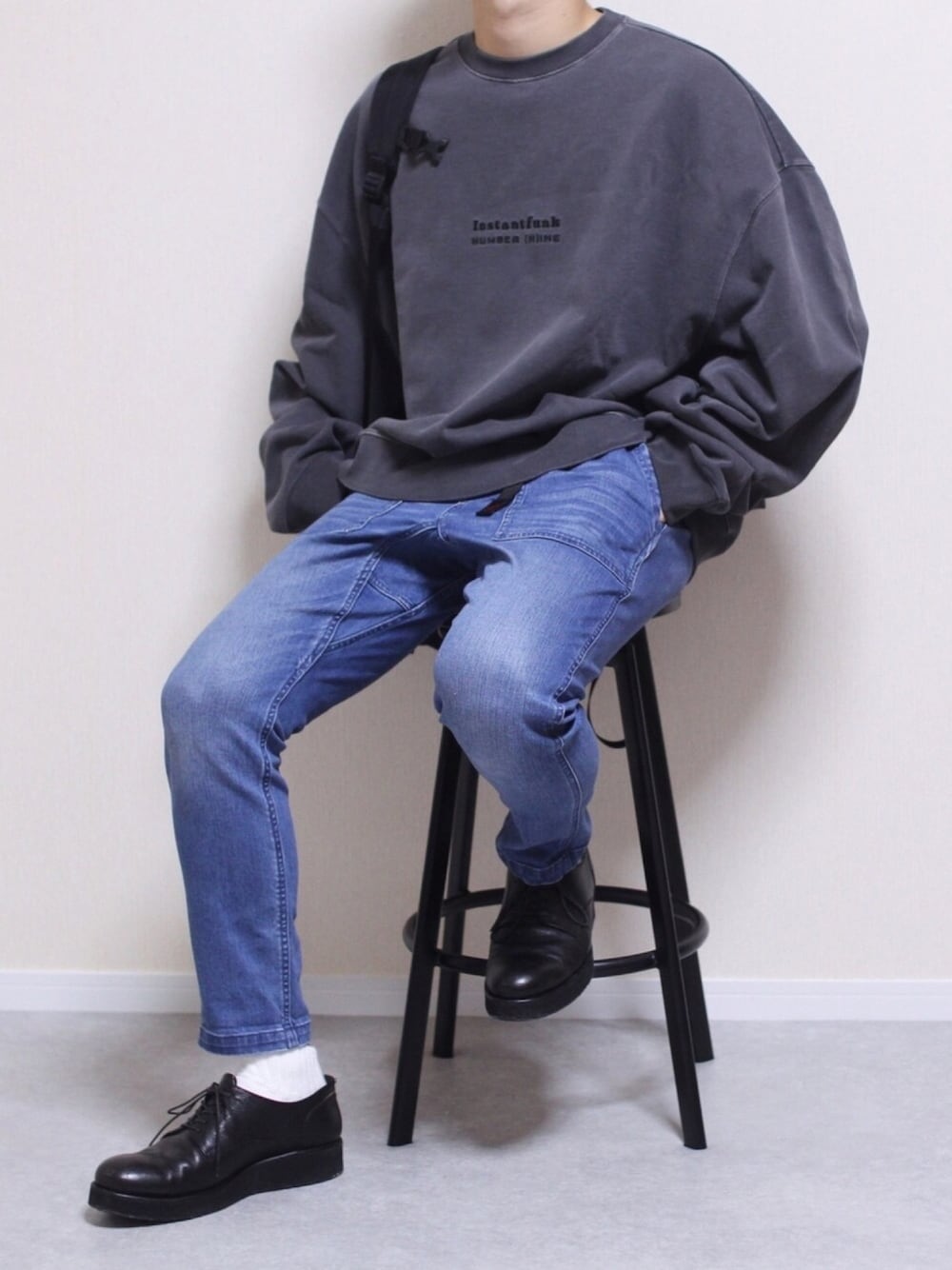 しんごのスウェット「【NUMBER (N)INE × InstantFunk】《ZOZO限定》ヘビーオンススウェット ビッグシルエット ロゴ刺繍 クルーネックトレーナー」を使ったコーディネート