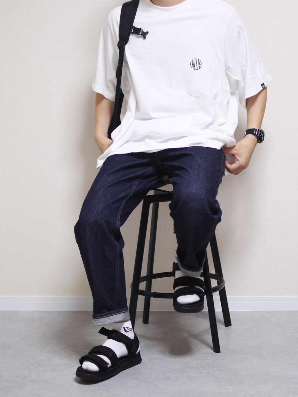 しんごのTシャツ/カットソー「【VALLIS by FACTOTUM】《別注》ビッグシルエット サイドカットリメイク クルーネックTシャツ」を使ったコーディネート