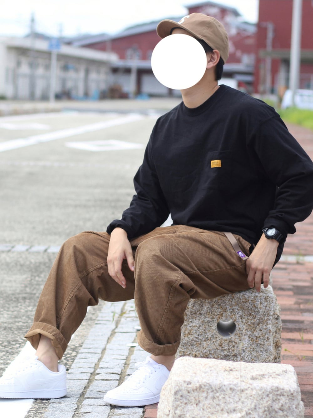 秋コーデ🍁 ブラックとブラウンの組み合わせが個人的に大好きです^ ^ キャップの色もパンツの色と合わせがち(^^)