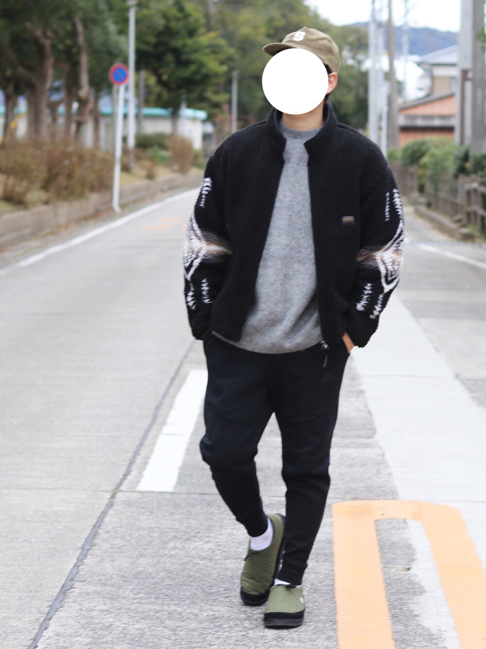 ボアジャケット😊 キャップと足元はグリーンで😉 インスタ→shingo__115