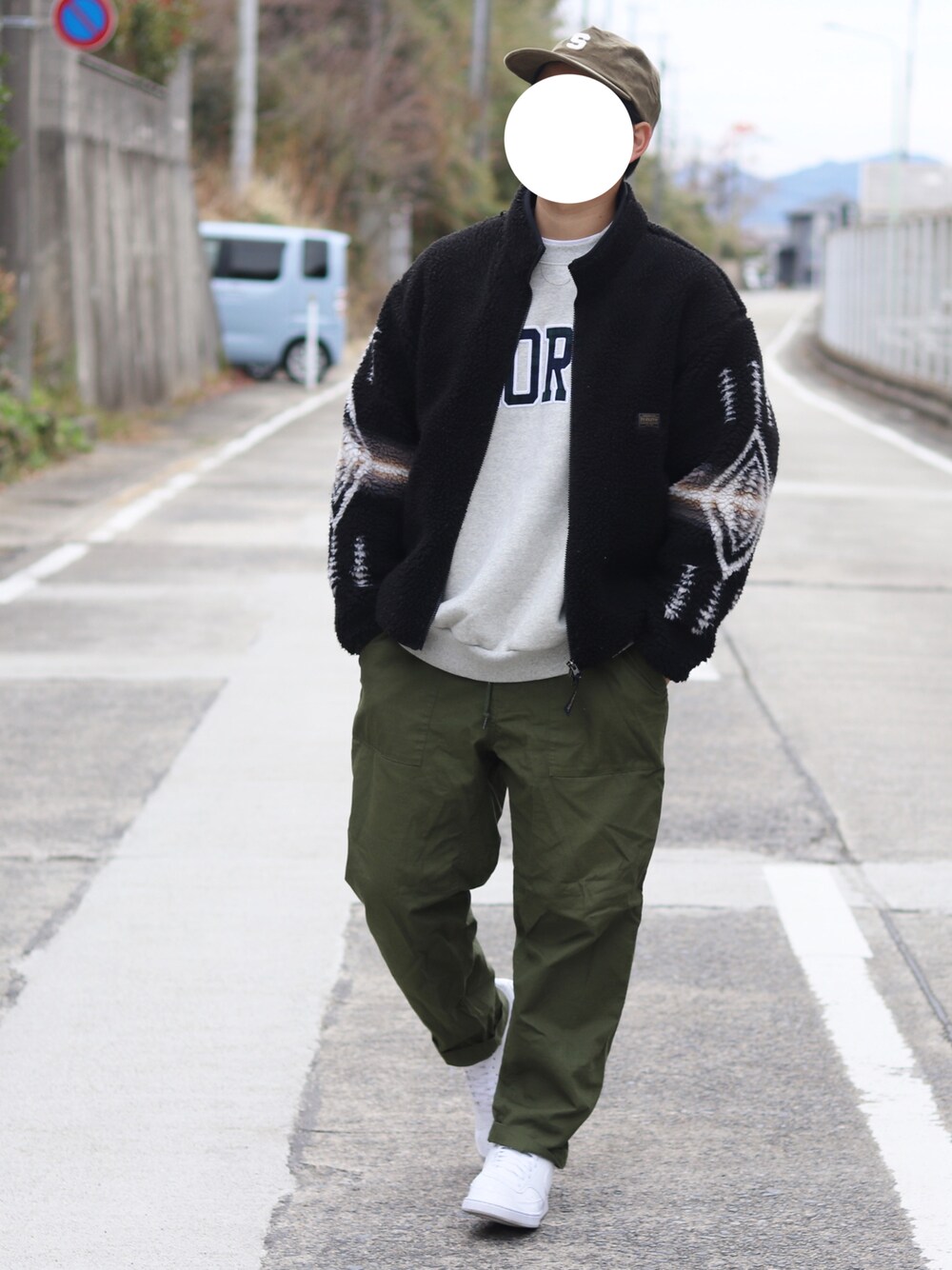 ロゴスウェットにボアジャケット☺️ カーキのパンツに合わせみた👌 インスタ→shingo __115