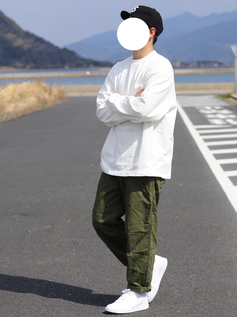 しんごのキャップ「選べる2素材 S ロゴワッペン ツイル ショートブリム アンパイアキャップ」を使ったコーディネート