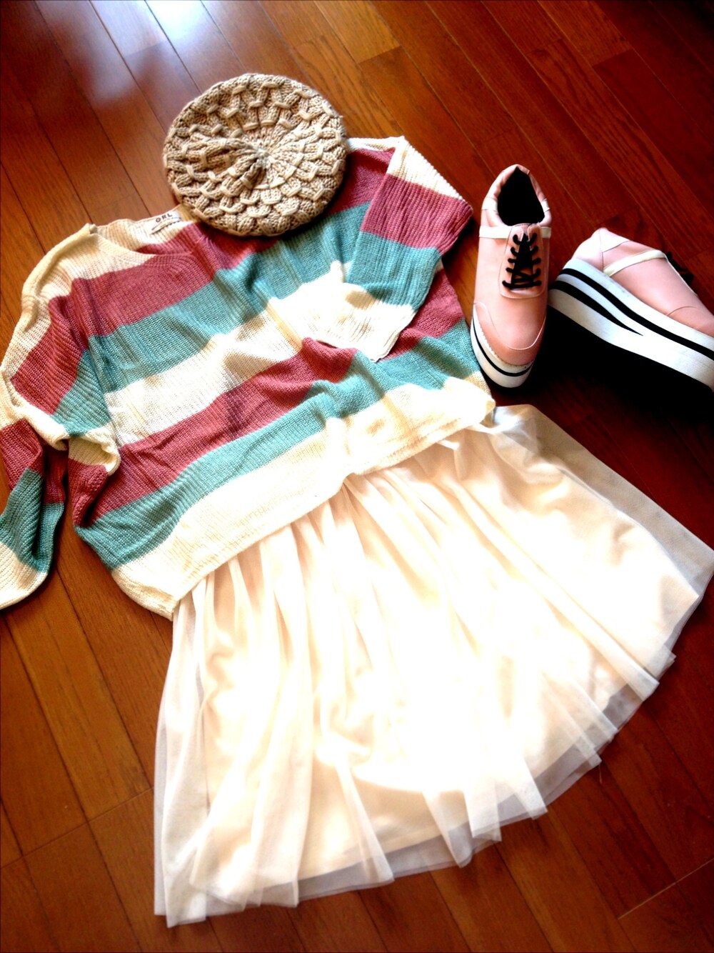 Beret∥AZUL by moussy Skirt∥INGNI other∥NO BRAND 激安コーデ。 またまた春意識です✿ 2枚目加工していない写真添付。