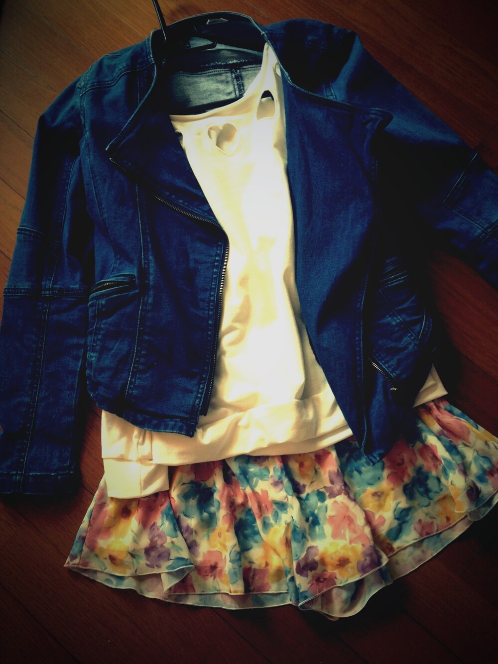 JK∥EMODA Tops∥? Bottom∥rienda EMODAのデニムライダースは、 値段もリーズナブルだったのに 形も可愛くて最高♡ Topsは首もと♡にくり抜かれてます。