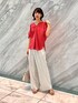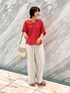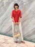 【サイズ感】 ・トップス:やや大きめ ・パンツ:標準的〜ややゆとりあり 【素材感・着心地】 ブラウスは程よく薄手でさらっとしており涼しいです。 パンツも肌に触れないサラサラとした素材感で 体型を拾いにくくリラックス感があります。 【コーディネートのポイント】 シンプルなワンツーコーデは色で遊んでみました◎ パッと目を引くカラーで、一気に夏っぽい印象になりますね。 Vネックの襟で抜け感を出し、 下はキレイめ素材のワイドパンツを合わせることで 砕け過ぎない、大人の雰囲気になります。 ≪"♡"をタップ! でコーデが保存できます!≫ いつもご覧いただきありがとうございます。 よければcotaniのインスタもどうぞ→@___32.c