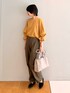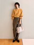 【サイズ感】 トップス:標準的 パンツ:標準的〜全体的にゆとりあり 全てMサイズ着用 【素材感・着心地】 トップス:さらっとした麻見え素材で軽いです。 パンツ:軽い素材で今の時期から長くお使いいただけます。 【おすすめポイント】 麻見え素材のサラッとしたブラウスは、 どんなアイテムにも合わせやすく1着あると使いやすいです◎ 【スタイリングポイント】 マスタードイエローにカーキを合わせてた秋カラーのスタイリング。 ブラウスの袖フリルがしっかり甘さをプラスしてくれるので 女性らしくおしゃれな雰囲気です◎ ≪"♡"をタップ! でコーデが保存できます!≫ いつもご覧いただきありがとうございます。 よければcotaniのインスタもどうぞ→@___32.c