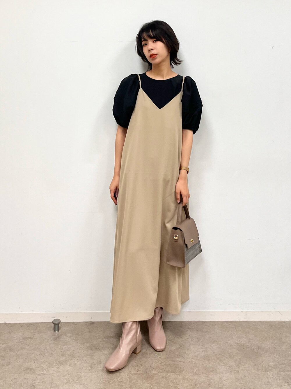 【サイズ感】 トップス:標準的 ワンピース:標準的 全てMサイズ着用 【素材感・着心地】 トップス:サラッと軽いです。 ワンピース:裏地なしですが、秋冬まで使えるしっかりめの素材感です! 【おすすめポイント】 ワンピースは今の時期には半袖のインナーと合わせて、 冬にはニットと合わせてお使いいただけるアイテム♡ 【スタイリングポイント】 秋を意識させるベージュ×ブラックのコーデです! ふんわりとしたお袖が1枚で華やかなトップスは、 シンプルなデザインで合わせやすいです。 小さめのハンドバッグを持ってお出かけしましょう♡ ≪"♡"をタップ! でコーデが保存できます!≫ いつもご覧いただきありがとうございます。 よければcotaniのインスタもどうぞ→@___32.c