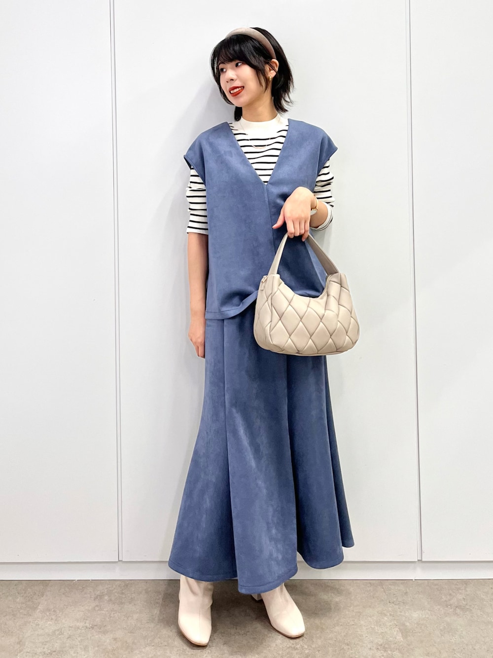 定番のボーダー合わせコーデ♡ スカートがマーメイドの形になっているので カジュアルになり過ぎないのが良いですね◎ 小物は白に統一して軽さを出しました よければcotaniのインスタもどうぞ→@___32.c