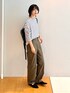 カジュアルな組み合わせでリュック合わせにぴったり! 無難と思われがちなボーダーも、 カーゴパンツに合わせて変化を楽しみましょう◎ リュックは合皮のキレイめ素材なので、 通勤やスカートコーデにも合わせられます!