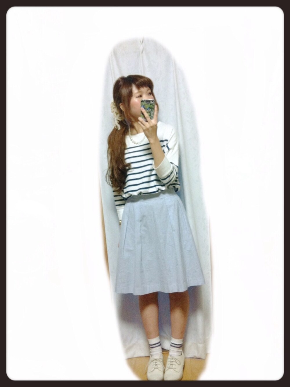 ボーダートップスとストライプのスカート