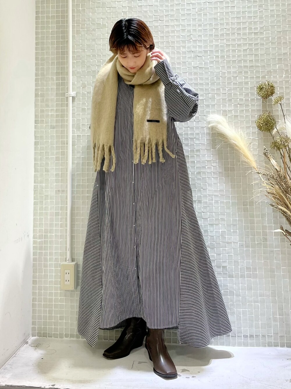 パルのワンピース「ストライプシャツワンピース」を使ったコーディネート