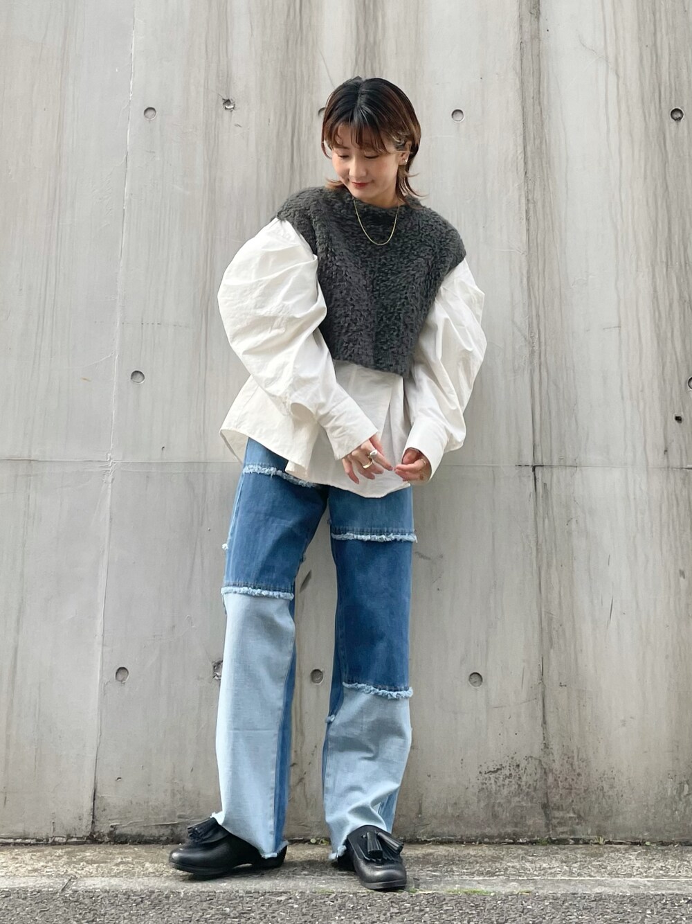 パルのデニムパンツ「パッチワークストレートデニム」を使ったコーディネート