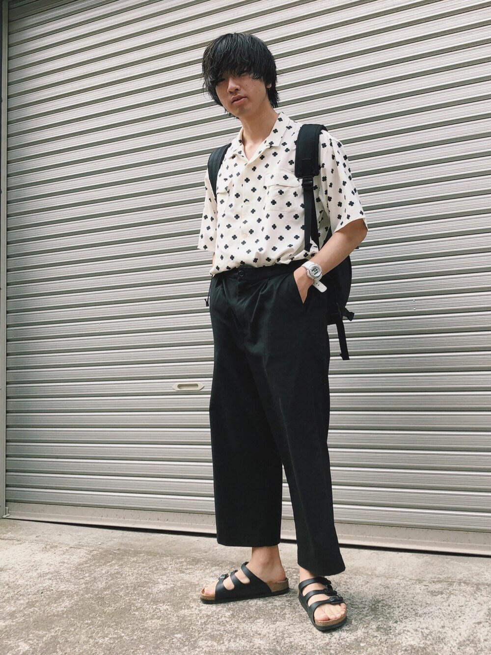 unakichiのシャツ/ブラウス「Cross総柄SS開襟シャツ」を使ったコーディネート