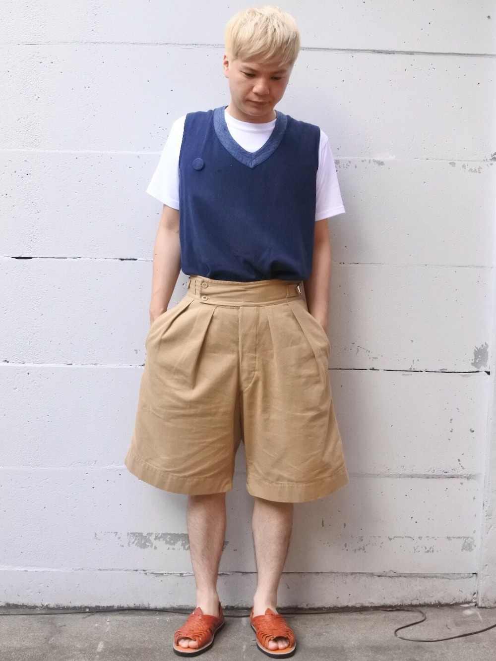 最近はヨーロッパミリタリーにはまってます。 イギリスのミリタリーハーフパンツに、 イギリスのミリタリーベスト。 ミリタリーは、 無骨な素材感と、綺麗なシルエットのバランスが絶妙なのです。