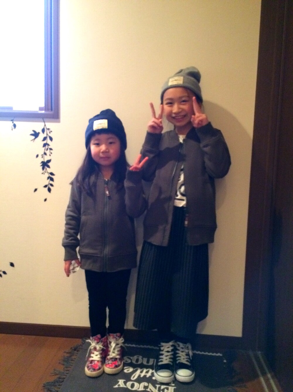 姉:8歳 妹:5歳 アウターはおそろでスウェット素材のMA-1🍀