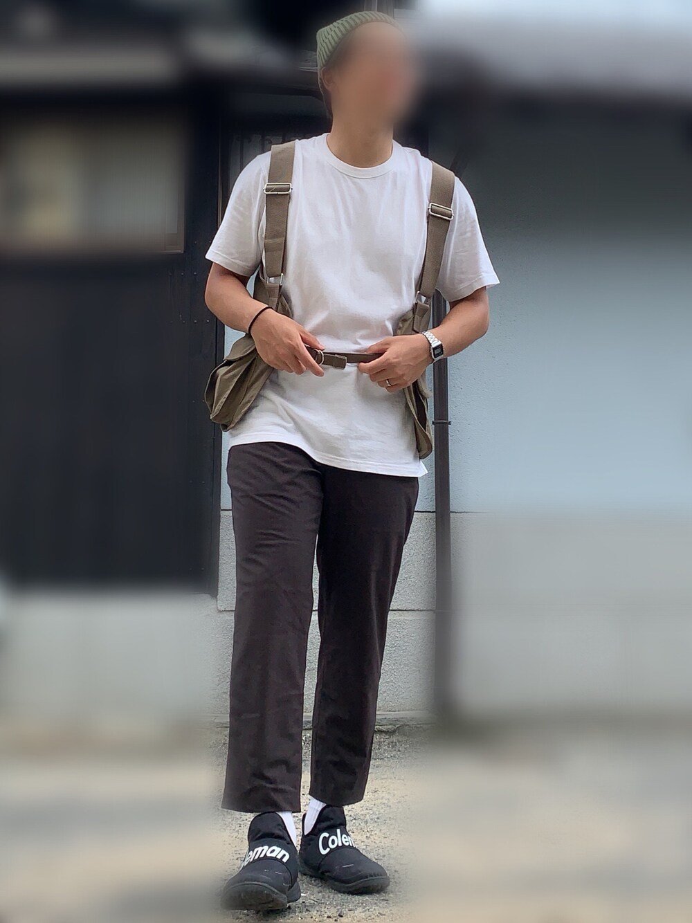 ホワイト系のトップスを着用したメンズの秋コーディネートの1枚目の写真