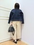 【素材感・着心地】 *デニムジャケットはコンパクトシルエット ながらも、ストレッチのきいた動きやすい 素材感です。 【おすすめポイント】 *ジャケットは着丈が短めで、ワイドパンツ の他にフレアスカートやワンピースを合わせ たフェミニンコーデもおすすめです。 【サイズ感】 *パンツは着丈選べるシリーズのショート丈 のSサイズを着用しています。 ショート丈は標準丈に比べて、着丈が10cm 短めになっています。 【スタイリングポイント】 春大活躍のデニムジャケットコーデ☆ 濃紺デニムカラーはブルーデニムに比べて 落ち着いた雰囲気になり、キレイ目スタイリ ングとの相性◎