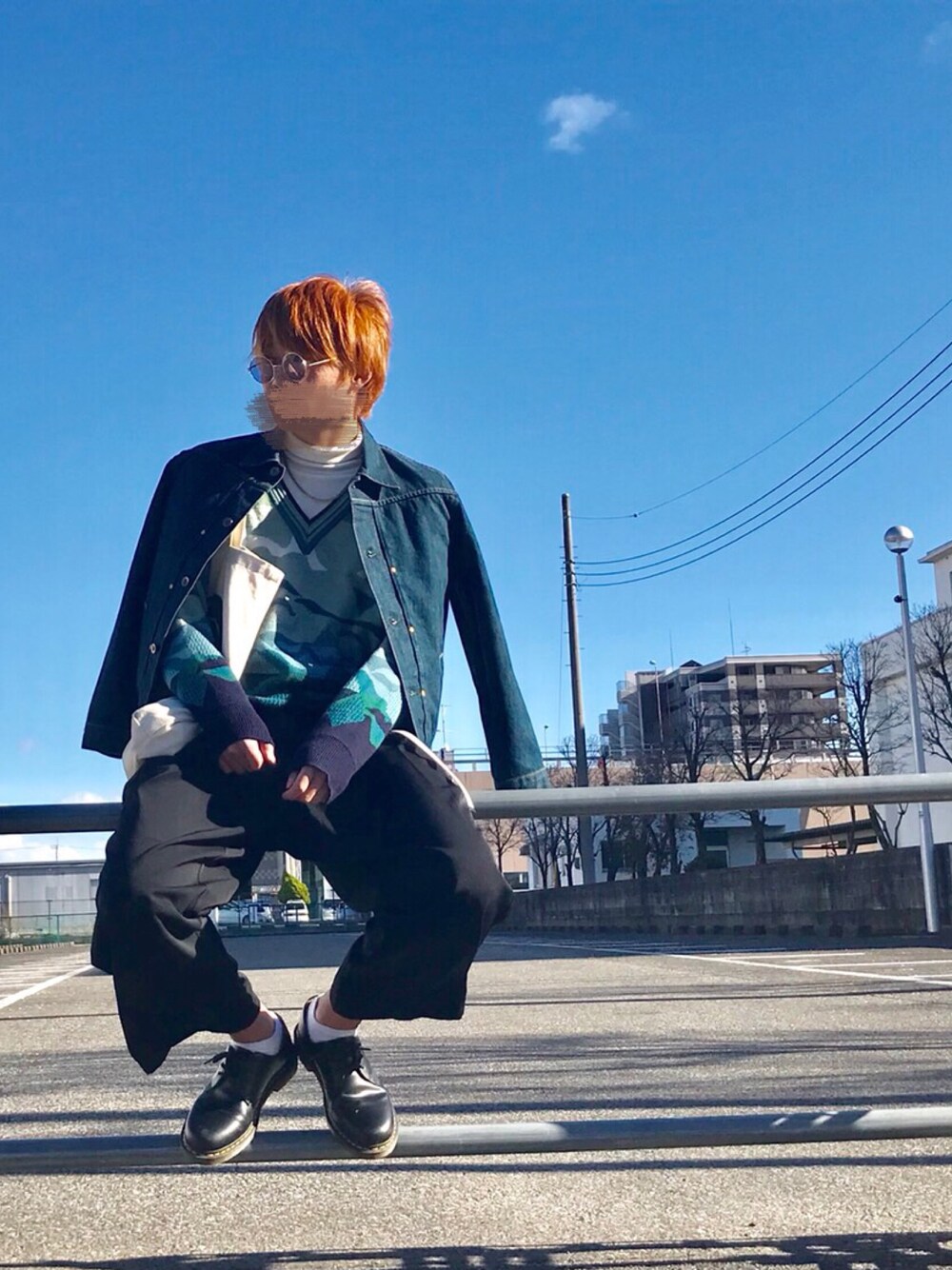 久しぶりの投稿✍️🏻 古着屋で買ったニットとジージャンを着たコーデです😛👍🏻 服に関係ないですけど空がとても綺麗でいいお天気でした🤤☀️