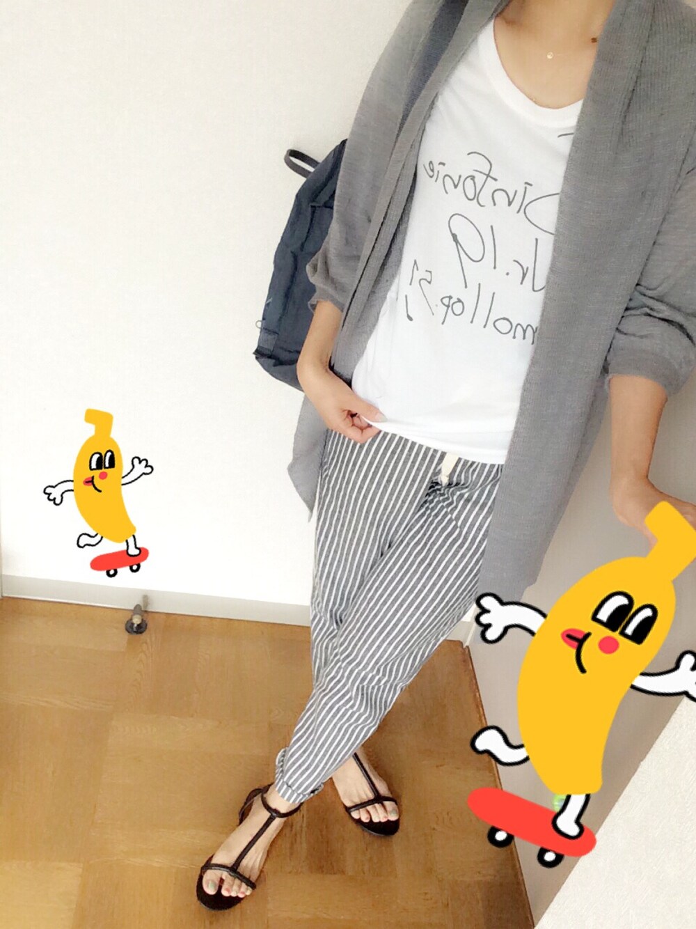 楽チンコーデ☻♡ パンツをネットで買うのは難しいけど、昨日届いたストライプパンツはラインが綺麗でポチして正解でした☻♡ グレーとホワイトでまとめて(*^^*)